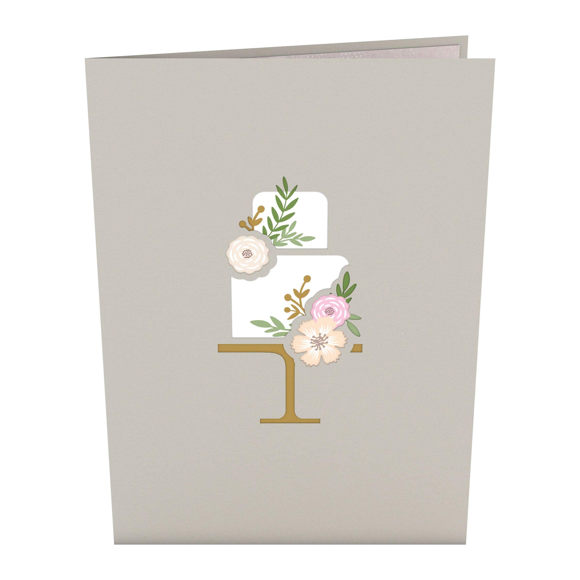 - UNIQUE 3D CARD: The front of this pop wedding card features a gray cover with an elegant flower covered wedding cake presented on a cake stand; upon opening, a beautiful three-tiered cake pop into view; pink and green floral embellishments decorate the side and top of the sweet treat.
